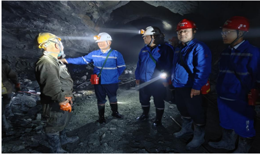 張漢武總經(jīng)理一行檢查了和龍分公司Ⅶ號(hào)礦組632中段和656中段,并在現(xiàn)場(chǎng)親切詢問(wèn)井下員工的工作情況,詳細(xì)了解礦組頂板、通風(fēng)等安全管理措施,強(qiáng)調(diào)一定要做好頂板檢撬及支護(hù)工作,保證井下通風(fēng)良好。隨后聽(tīng)取了和龍分公司經(jīng)理石恩國(guó)黨建工作、安全生產(chǎn)、經(jīng)濟(jì)運(yùn)行情況匯報(bào)。